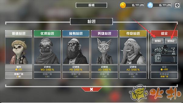 1、在枪匠界面中点击【材料1】【材料2】按钮放入材料枪