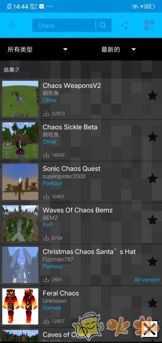 4、如果混沌模组没有用就把它的资源包和行为包放到最上面。你学会了吗?第一张图是混沌模组搜在这个软件里搜索Chaos第一个。