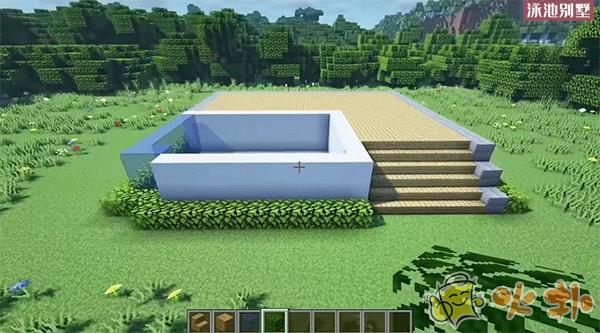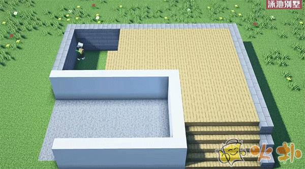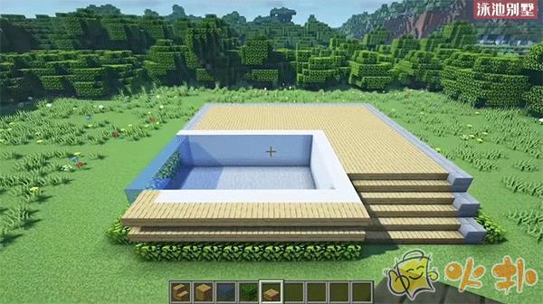 6、在用橡木板装饰游泳池。
