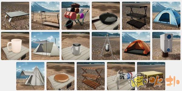 7、主画面可以自由展示获得的露营用具及料理。不管是要重现电视动画《摇曳露营》中的露营地,或是随喜好构筑出自己的露营地,能以自己的方式、随兴的打造露营地。