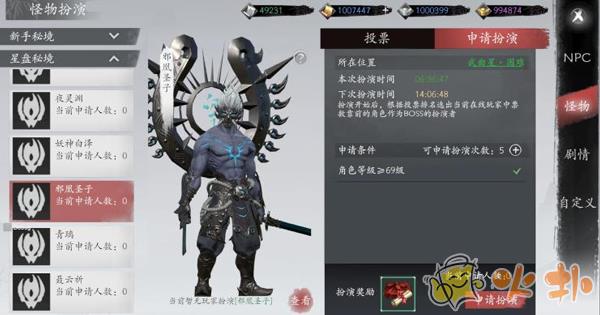 玩家每人每天可以申请和扮演1次秘境BOSS,如果想增加扮演的次数,可以使用BOSS扮演券来增加扮演次数,BOSS扮演劵不需要花钱买噢!可以通过给其他玩家扮演BOSS投票获得,也可以通过分享游戏获得的积分进行兑换。需要注意的是,每个BOSS可扮演的条件是不同的,有的要求角色等级、有的要求活跃度、还有的要求探索秘境的次数。大家在扮演的时候可以根据自己的实际情况来选择想要扮演的BOSS。