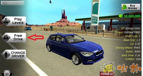 首先第一步,我们点击游戏的“free drive”按钮,翻译过来就是“自由驾驶”的意思。