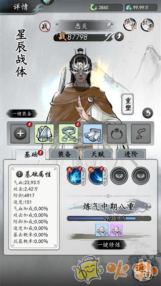 升星:装备升星优先武器、戒指和鞋子,衣服和腰带不关键,建议其他角色穿个同等级的橙色即可。所有资源留给主角装备升星。