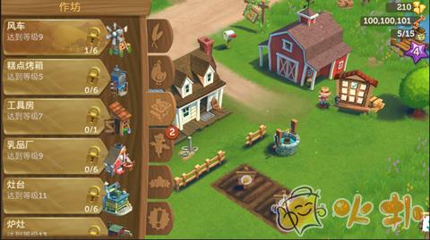 不论是农场场地还是各种各种作物、作坊,都需要农场达到一定的等级才能解锁,因此要发展壮大,生产和销售是关键。只有把产品卖出了才能增加经验值,才能升级解锁。