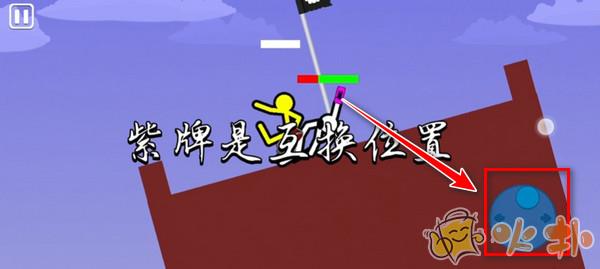 2、紫色卡牌是互换两个人的位置,卡牌技能是自动放的,我们只要要控制好方向,不要放偏了