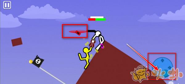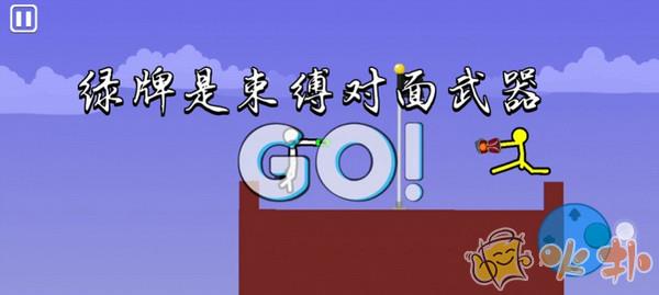 1、这个火柴人决斗者是随机切换卡牌的,我们需要记住每张卡牌的效果,绿色卡牌是束缚对手的武器