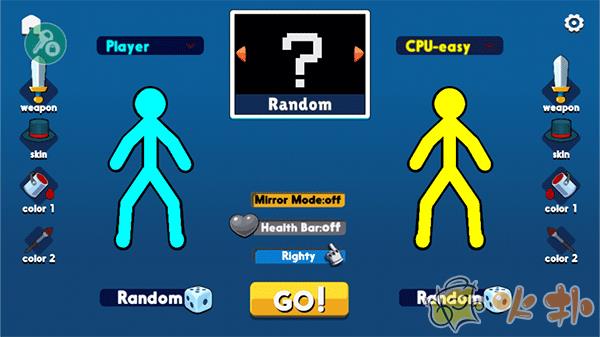 2、选择好模式和人数后,进入对局准备界面,在这玩家可以给火柴人换装备,以及皮肤等等,准备好后点击go就能进入游戏