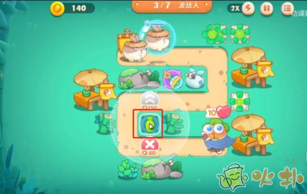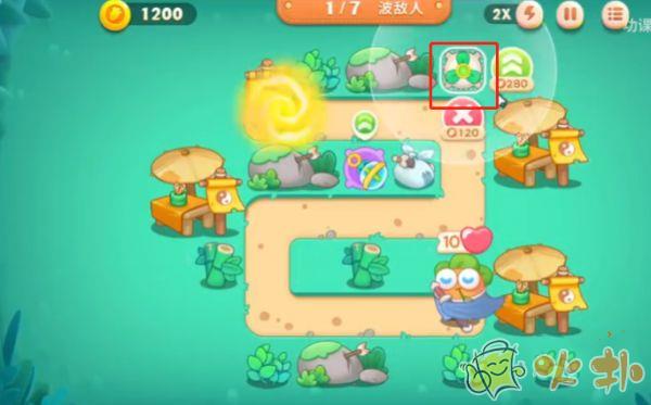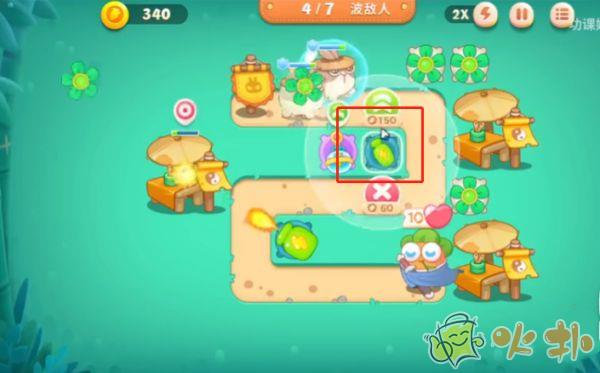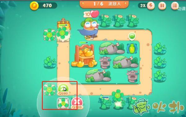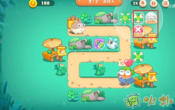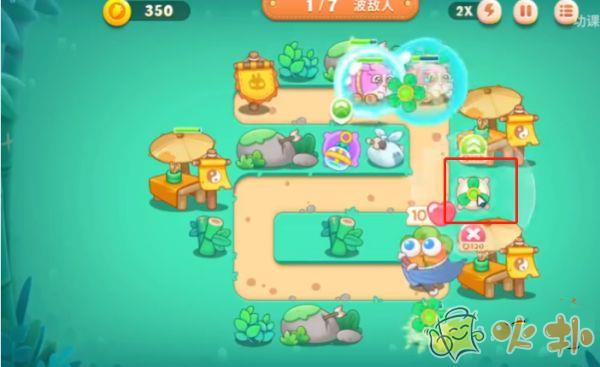 1、首先升级右边的风扇(风扇可以攻击一条直线),然后升级下面的炮台。