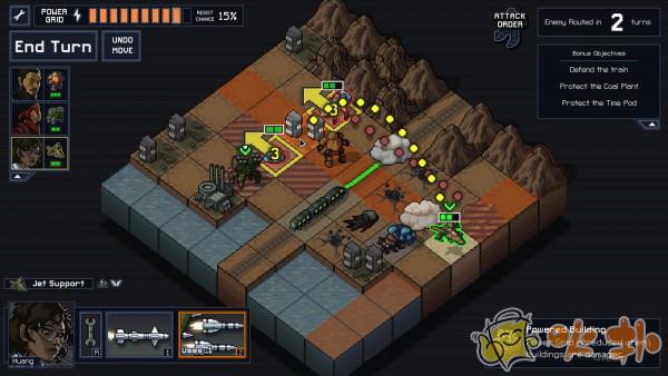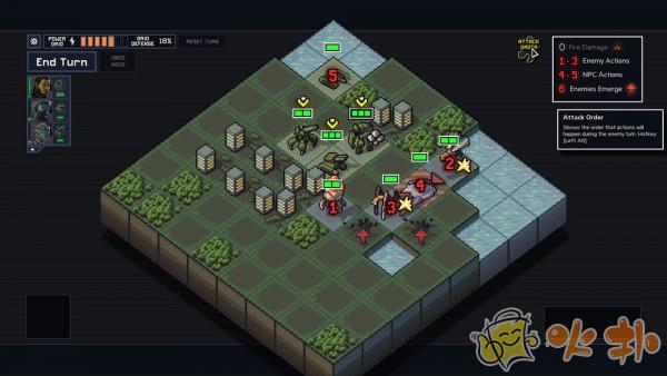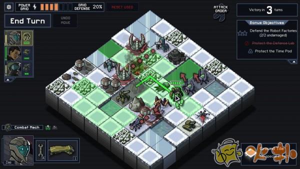 像下棋一样,“举棋未定”,通过观察攻击及其结果是很有帮助的。可以多次使用撤销按钮来移动你的机甲,但是一旦你发起攻击,就不能回头了。只有当制定出最具潜在伤害的行动并使受到威胁的建筑得到有效保护后,才开始攻击。