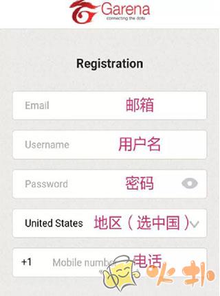 2、打开garena的官网,地区选择中国,发送一条验证码到手机后再登陆一遍注册成功。
