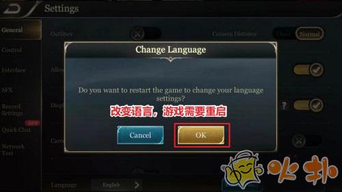 选择简体中文后,游戏提示需要重启,点ok重启游戏。
