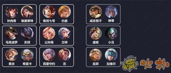 10、孙尚香-维奥莱特 鲁班七号-约恩 成吉思汗-琳蒂