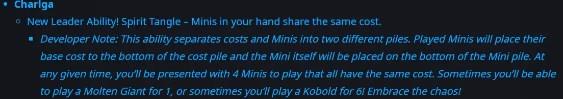 正常情况下,游戏中仅存在一个卡牌队列,卡牌的费用作为卡牌的属性,和卡牌绑定。但是卡尔加的首领能力是创建一个费用队列,把卡牌的费用从卡牌属性中剥离,单独形成一个队列。