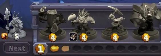 使用1费打出联盟步兵后,当前费用:4费,下一个费用:5费。