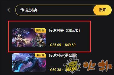 第二步:在搜索页面搜索关键字【传说对决】,在搜索结果中选择国际服。