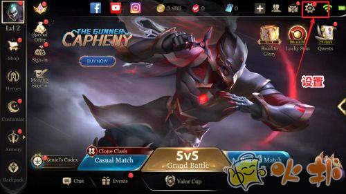 打开传说与对决后,进入游戏后,点开右上角的齿轮样设置。