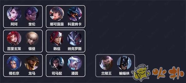 12、黄忠-希露卡 百里守约-苏 后羿-拉维尔 李元芳-菲尼克