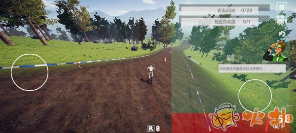1、点击左下角小圆圈,可以控制山地车的范方向