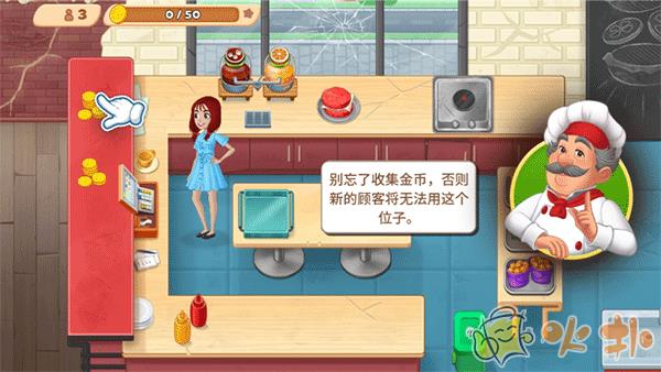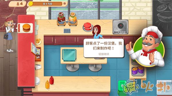 5、进入游戏后,会有新手指导,然后开始为客人制作美食,每个关卡开始前会显示通关目标