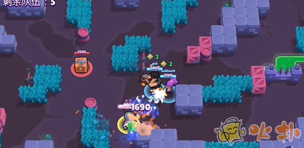 也可以站住位置,当对面有人靠近探视野的时候,用普通攻击攒一点能量,等到能量满的时候就可以在其他玩家血拼中杀出一条属于自己的收割之路。公牛的大招蛮牛冲撞距离十分远,因此玩家在准备偷袭动作时也一定要预判好距离和时机,别等到自己一个大招冲出去发现对面不打了,然后又被几个玩家一起包夹,真的就是白给,硬送的操作。