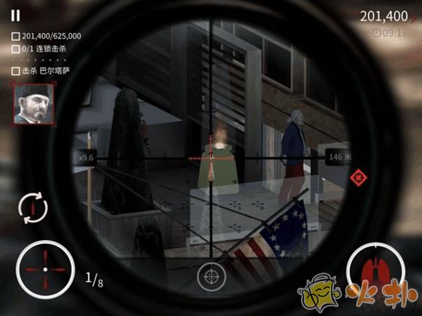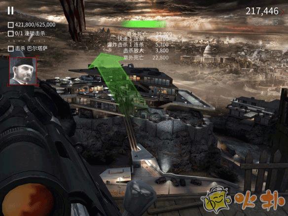 之后上面会有个警卫也透过玻璃去看那辆车。打玻璃打警卫为就会砸中另一个人,就可以完成连锁击杀。