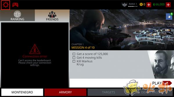 1、双击打开代号47狙击游戏,点击左上角的齿轮按钮;