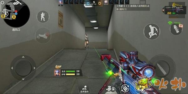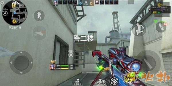 保卫者狙击手的位置,在这可以看到中路方向,警家方向,还可以看到B斜和吧台出口,是个绝佳的狙击点