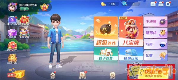 4、像小编这样的纠结症患者就直接选择右下方的快速开始不洗牌的新手场就可以了;