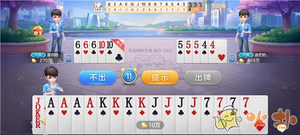 6、在游戏过程中,系统会提示玩家出什么牌,按照自己的想法也是可以的;