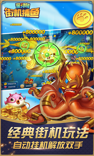 彩狗街机捕鱼是一款趣味十足的模拟街机捕鱼的手机游戏,您需要操作捕鱼炮台,发射子弹捕捉各种各样的鱼类。彩狗街机捕鱼中鱼类设计独特,种类繁多,从普通的小鱼到传说中的神秘鱼类,还提供了丰富的任务和活动。.游戏画面精美,色彩鲜艳,给玩家带来视觉上的享受。而且操作简单,上手容易,适合各个年龄段的玩家们,喜欢的朋友快来本站下载体验吧!