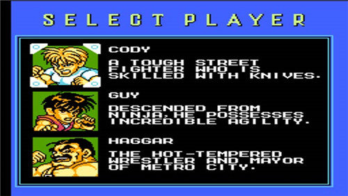 sd快打旋风单机版游戏中玩家可以选择三位角色进行战斗,分别是哈格、科迪以及凯。