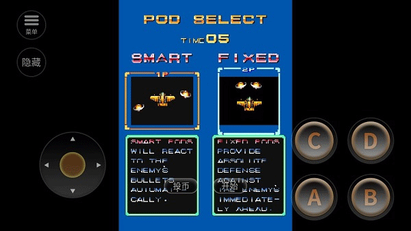 首先,有两种机型可选,一种是保护球在四周环绕的,一种是保护球一直在前方吸收子弹,显然对于这种纵版游戏来说,后者是更好的;