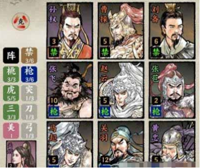 孙权+曹操+刘备+张飞+赵云+张苞+马超+关羽+黄忠,其中曹操孙权都在,可以说这个阵容面对骑兵的时候就是一个死亡压制的阵容,毕竟在属性上,他们都是挺克骑兵的,虽然没有过多的输出,但是作为前排的几个张飞赵云都是非常强的,就是集齐这个阵容有点难。