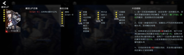 卡池:卡池分公共卡池和机密卡池,玩过抽卡的都懂。当前人物比较少。卡池概率都是要调整的,所以就看个大概就可以了,列出的人物应该时当前的所有人物了。