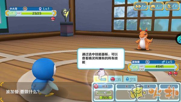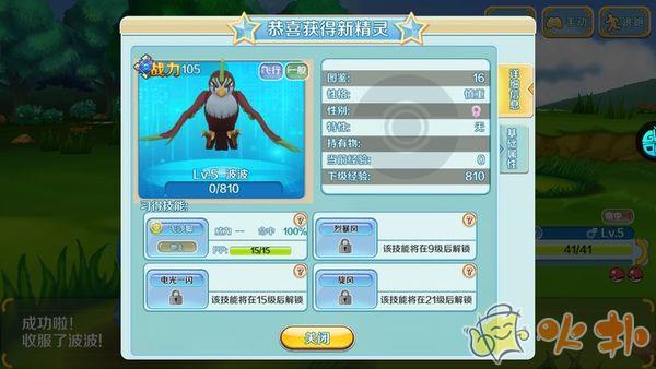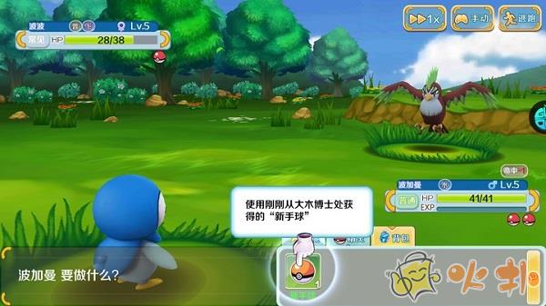 4、之后就可以出镇子自由探险了,这里我在草丛里遇到了波波,低等级的波波不会攻击技能,可以在这里刷级