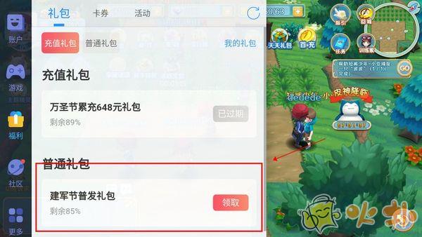 2、在弹出的果盘中心中选择点击福利,选择礼包点击领取