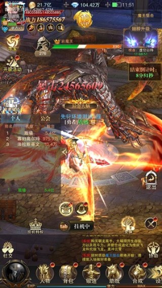 2、魔王狙击开启后,玩家们有10分钟挑战BOSS,对BOSS输出伤害越高的玩家和公会(分开排名),获得的奖励越丰厚。